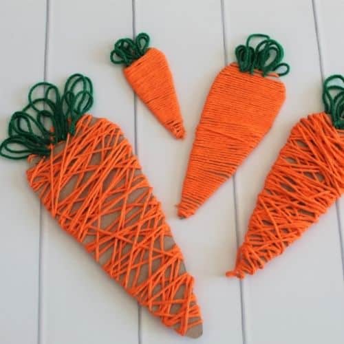 If you have little ones at home or in the classroom, they will love this fun and bright Easter Carrot Yarn Craft!