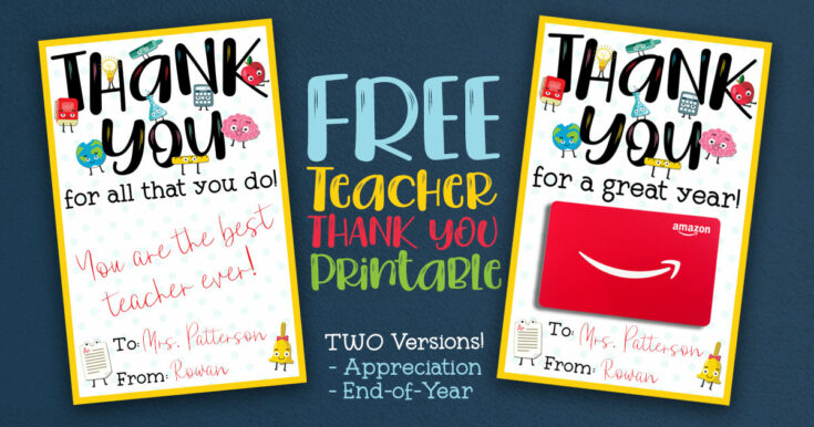 FREE Teacher Appreciation Thank You Printable – Two Versions!