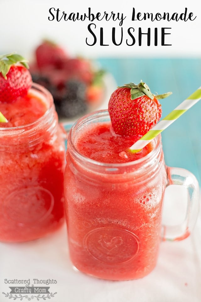 Three Ingredient Strawberry Lemonade Slushie- perfect sweet frozen treat!