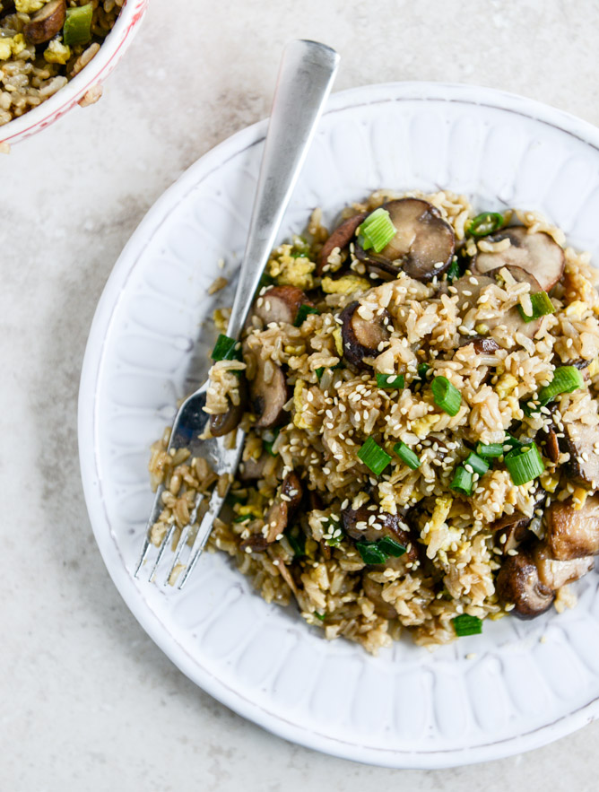 The other day I had mushrooms on hand and was looking for a recipe to make. What do you know, this 30 Minute Portobello Fried Brown Rice by How Sweet Eats hits the spot.