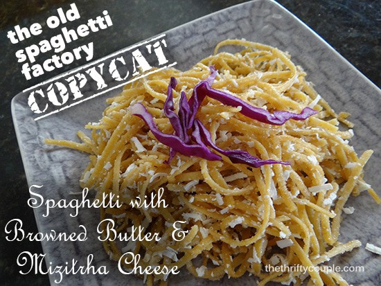 11. Copycat Old Spaghetti Factory Spaghetti with Browned Butter and Mizithra Cheese | Source: The Thrifty Couple