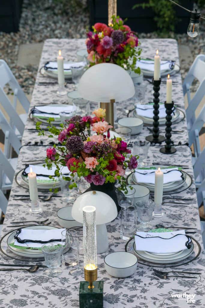 For this dinner party tablescape, I wanted to lean into the vibes of The W, our outdoor space.
