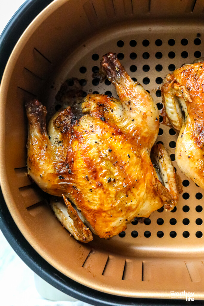 For an easy meal that will impress, you cannot go wrong with the air fryer salmon recipe or our popular Air Fryer Cornish Hens and Air Fryer Pork Ribs. It feels upscale but is so simple that a beginner cook could manage the recipe.