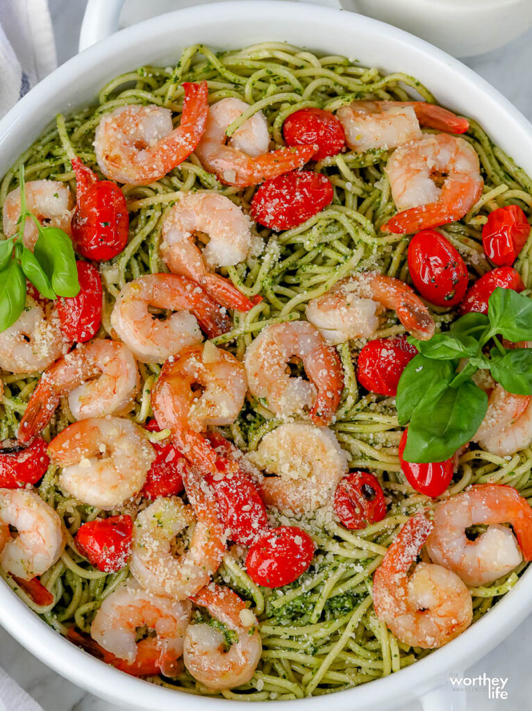 Tender pasta, homemade pesto, juicy shrimp, and more.