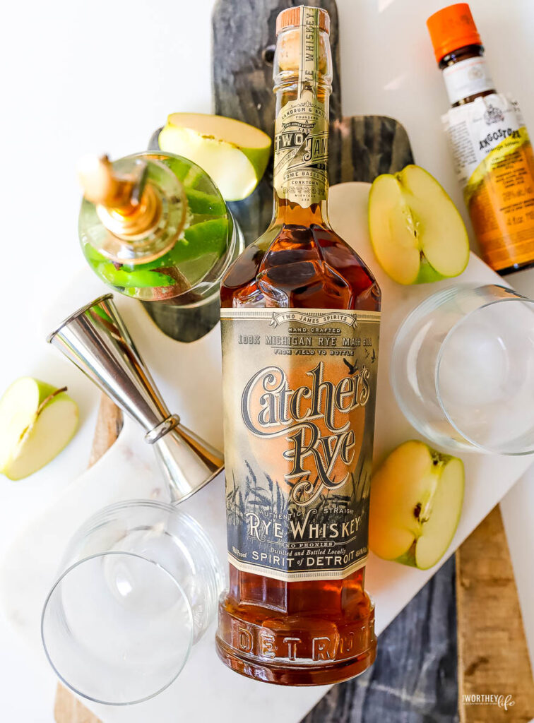 Rye Whiskey. For this cocktail, I used Two James Spirits Catcher’s Rye because it imbues the cocktail with smokey notes that play well with the apple cider and spice.