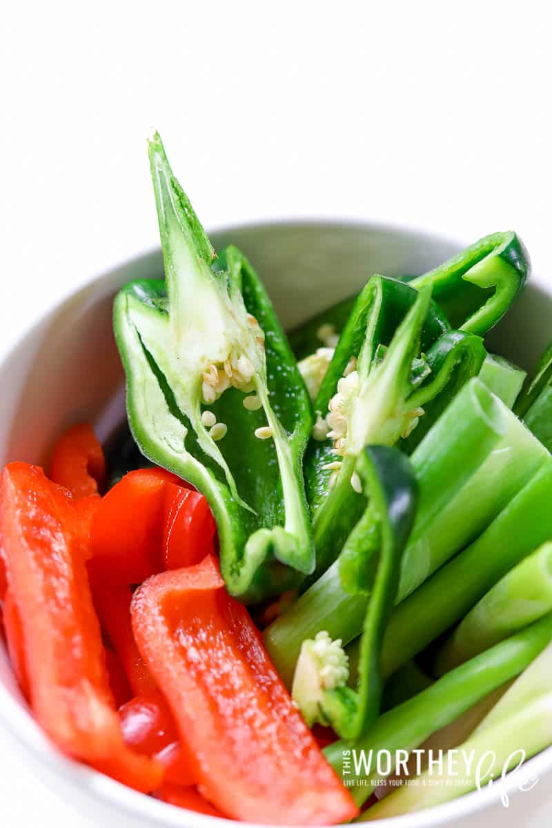 But if you don’t want the heat, grab different color bell peppers to add a pop of green, red, yellow, or orange color.