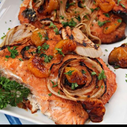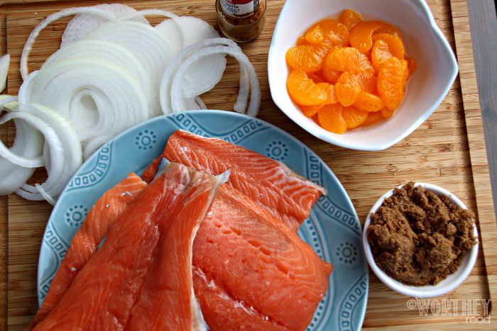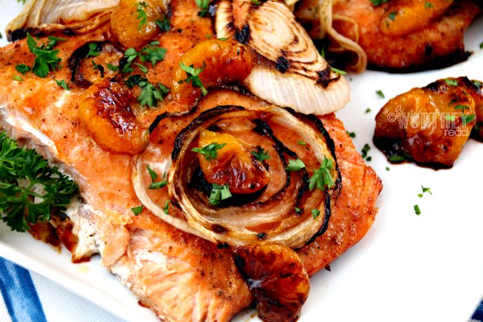 Baked Salmon, Sweet Candy Onions, and Brown Sugar Mandarin Glaze