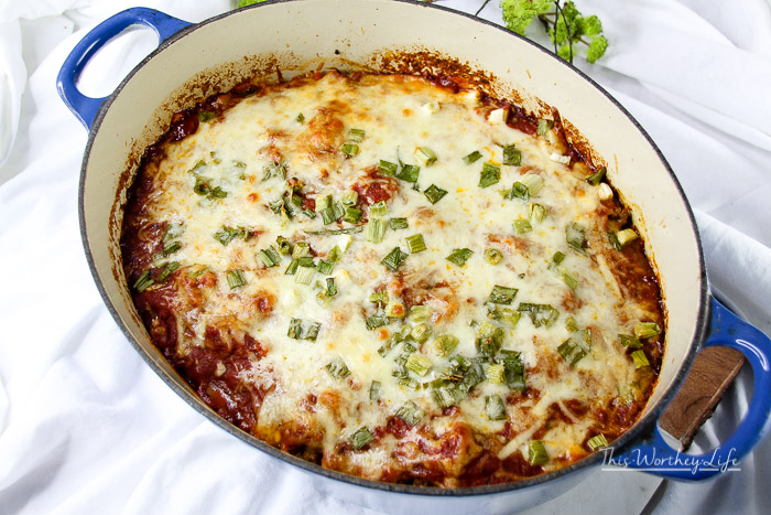Enough delicious food to feed an army, or at least your hungry brood of humans to get them through the night. Top with more shredded cheese and fresh green onions and you’re golden.