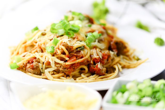 Dinner just got a whole lot easier with this dinner casserole. It’s a pasta casserole, hearty, with ground beef and fresh veggies. Say hello to a quick and easy dinner tonight with our Baked Spaghetti Casserole recipe. Grab the directions down below!