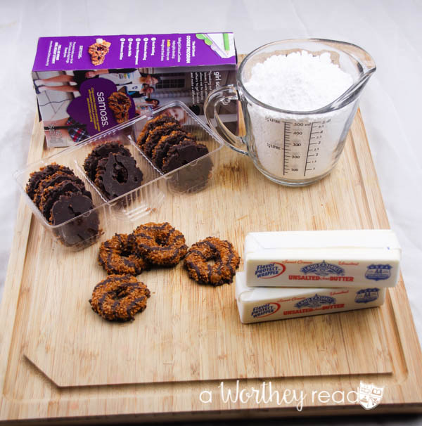 We use Girl Scout cookies to make a Samoas Cookie Buttercream for the icing.