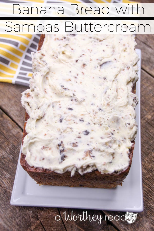 Wow, Samoas are seriously one of my favorite Girl Scout cookies! A buttercream is perfect on top of homemade banana bread