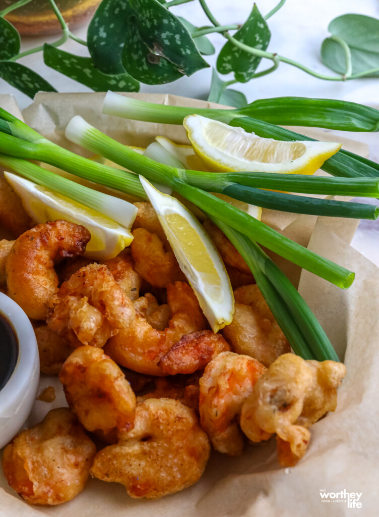 Umami seasoning and granulated garlic. Adding umami seasoning and granulated garlic allows this batter to level up and adds the perfect amount of seasoning that compliments the shrimp rather than overpowering it with strong flavors.