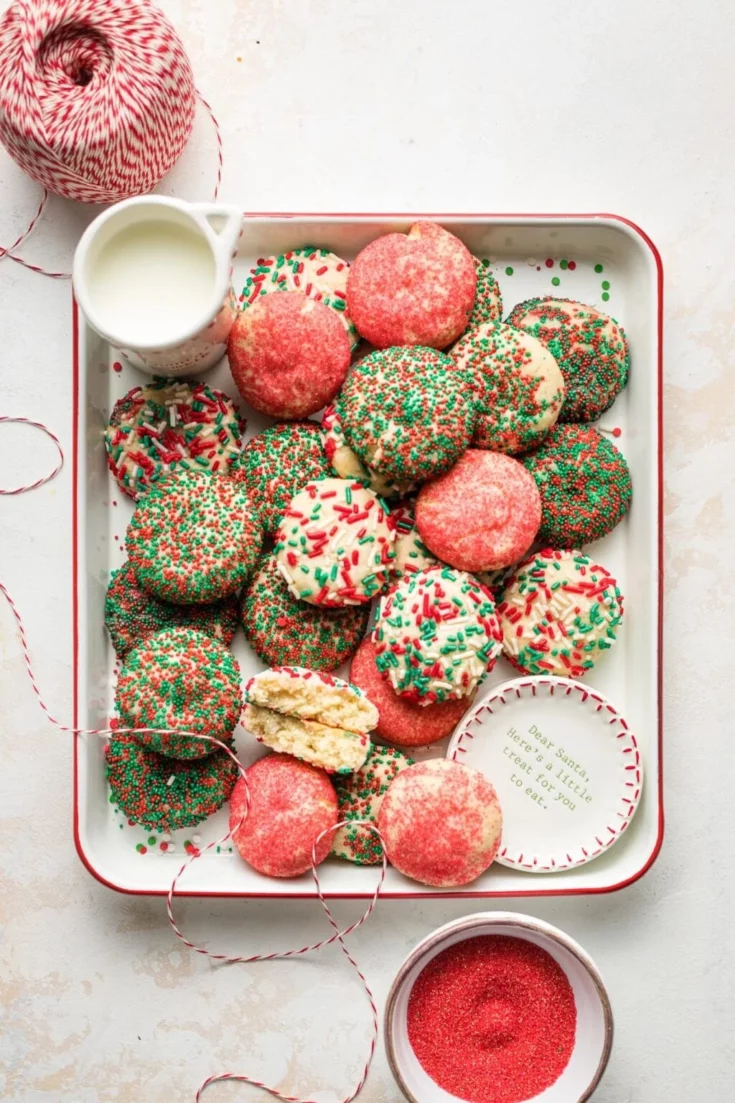We love these homemade Christmas Sprinkle Cookies for gifting during the Christmas season. It is also THE perfect recipe for holiday parties and bake sales.
