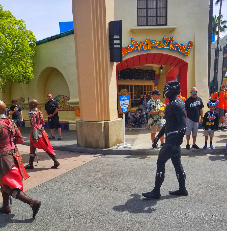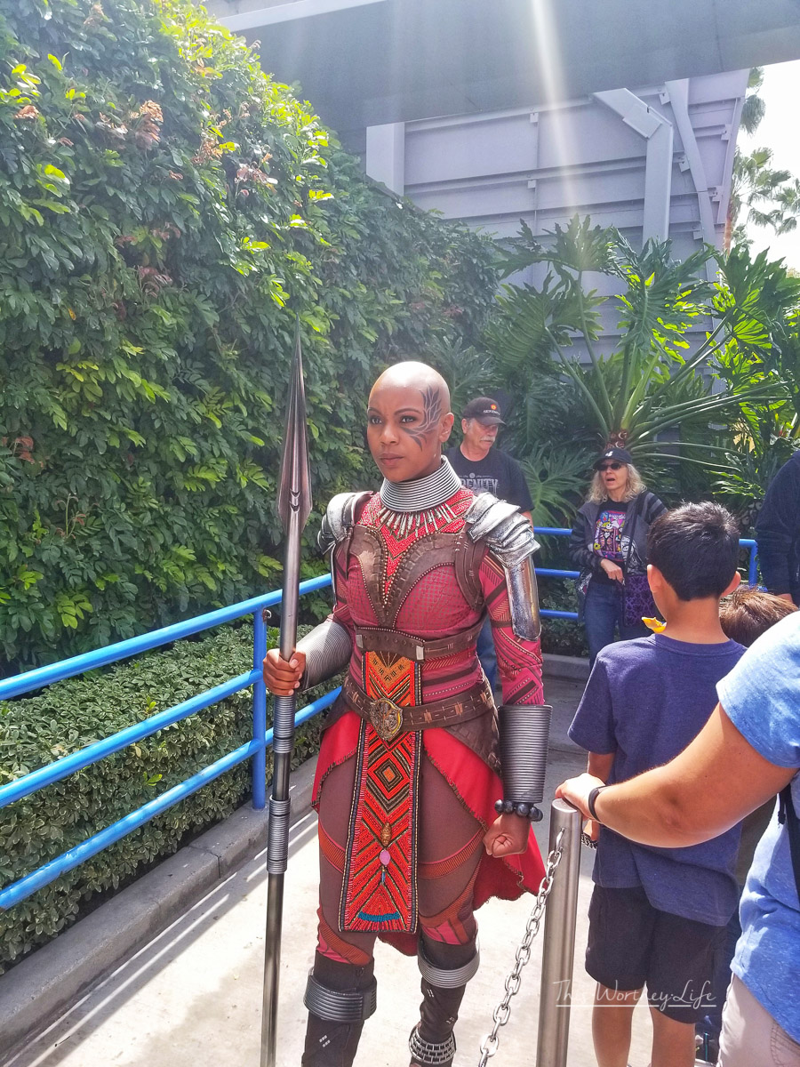 Right around the time Black Panther and the Dora Milaje are ready to come out and meet their fans, they walk down from the Guardians of the Galaxy Mission Breakout ride to the Stage 17 area. That’s another good time to snap a photo and even record the small procession coming down the streets of Hollywood Land. You will hear familiar music from the movie playing as well. It was pretty cool and gave me all the chills!