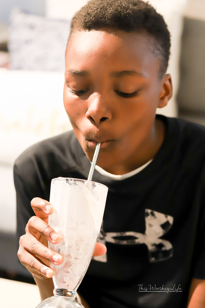 And while those are delicious and perfect for an adult Black Panther movie watch party, we wanted to create a kid-friendly Black Panther drink. And of course, all three boys tried it and gave this Blackberry float a thumbs up!