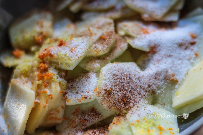 - 4 Granny Smith Apples peeled, cored, and thinly sliced