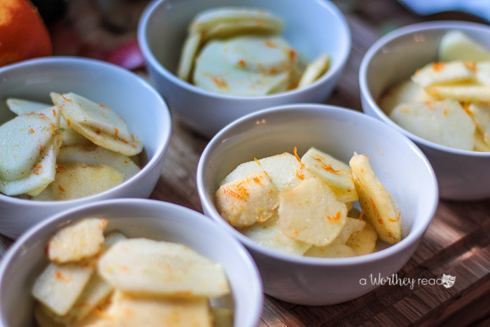 - 4 Honeycrisp Apples peeled, cored, and thinly sliced