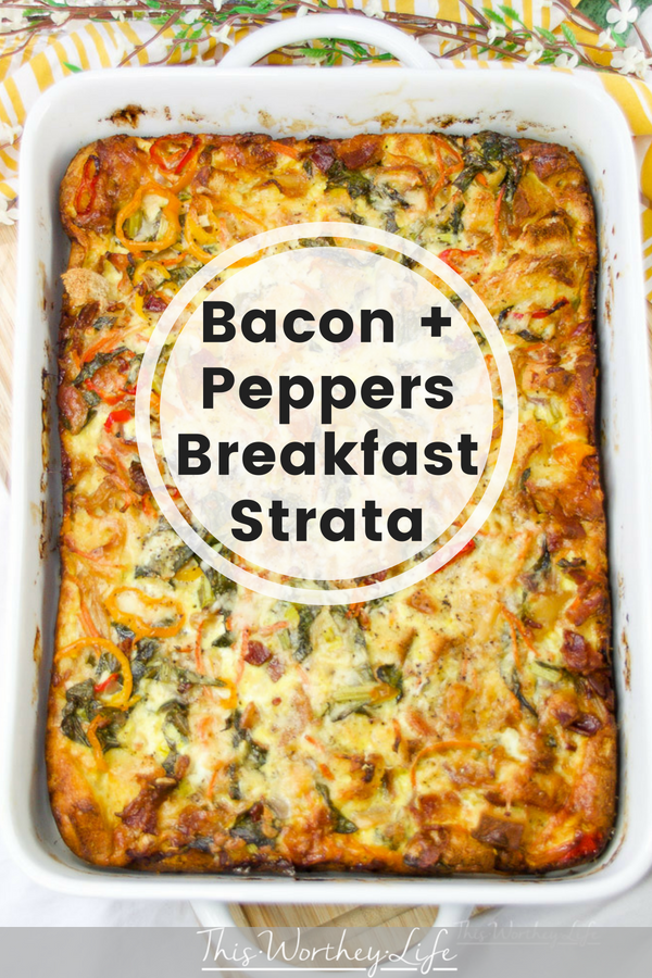 Take breakfast to a new level with our loaded bacon + peppers breakfast strata!