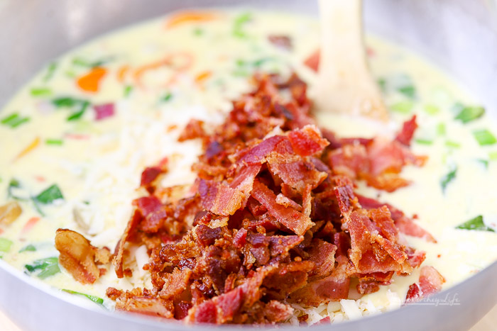 We threw in over a pound of irresistible bacon, and I don’t think anyone will mind at all, well, maybe the vegetarians and vegans, but we won’t let them know.