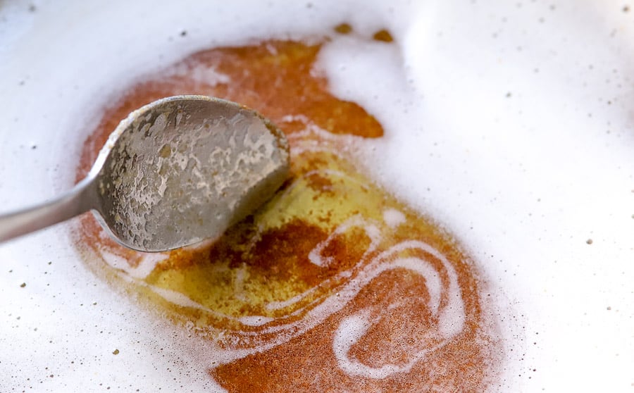 In 6 to 8 minutes, the melted butter will begin to foam, and the butterfat will start to brown.
