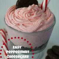 Easy Peppermint Cheesecake Parfait Recipe. This time of year, Peppermint recipes are big Christmas Treats. And we all can appreciate a good cheesecake recipe. Pin this recipe now to your dessert/Christmas board!