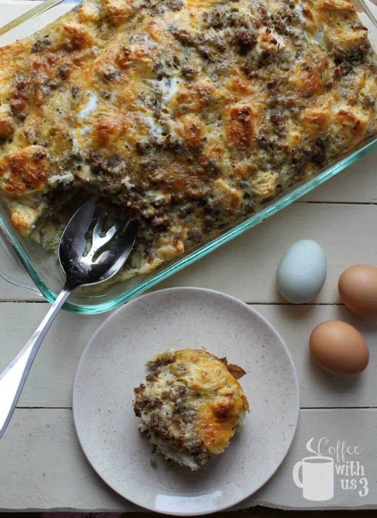 This easy breakfast casserole recipe is one of our go-to breakfast casserole on Christmas morning.