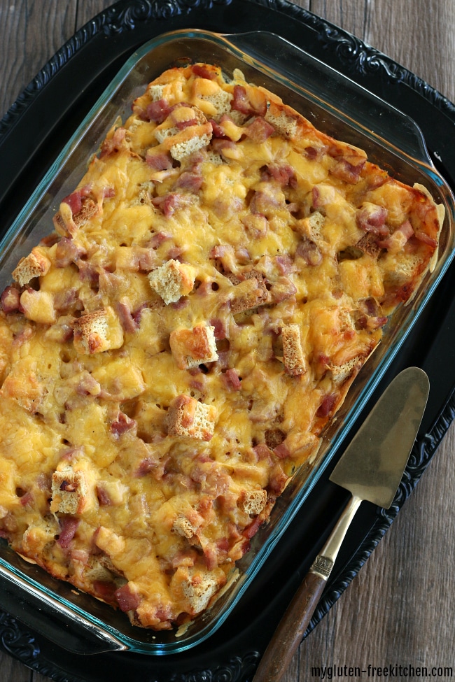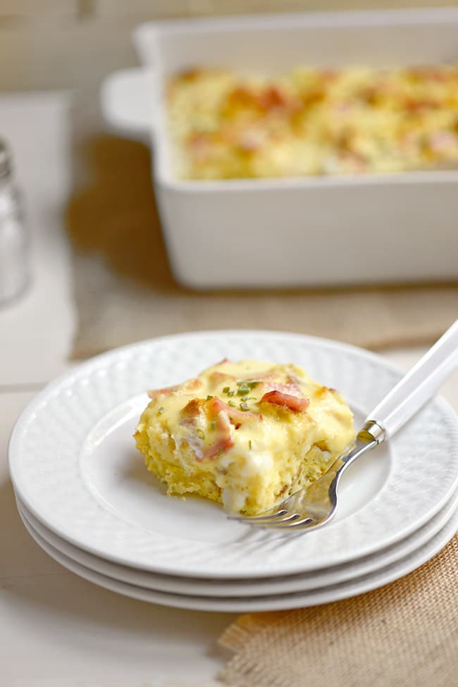 Cheesy Waffle and Ham Breakfast Casserole Recipe + Tutorial