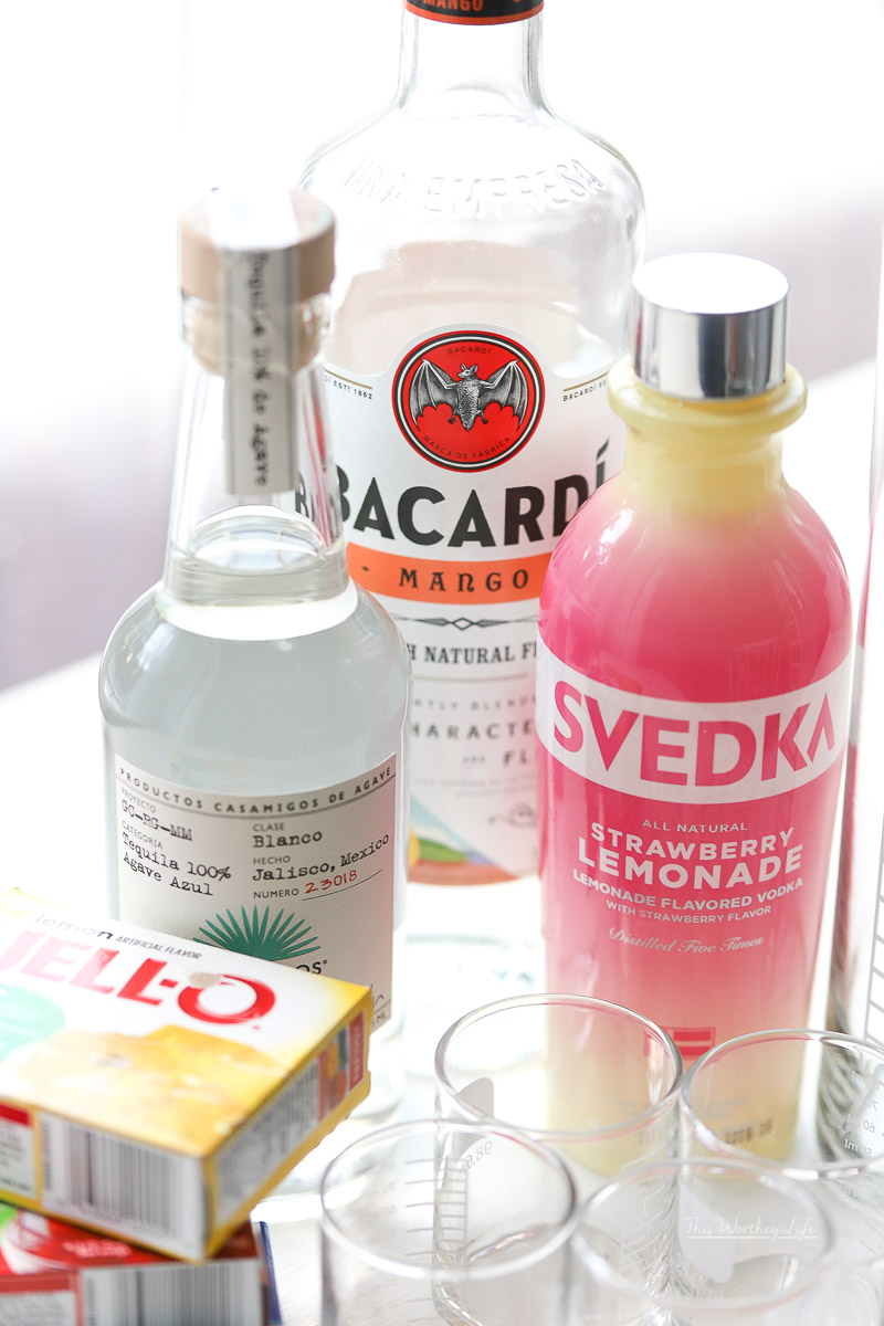 So generally, you will find tequila or vodka is used when making homemade jello shots.