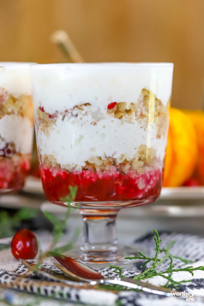 So if you do not eat all your dessert, no worries, store it all in the fridge. If you can, don’t assemble the trifles till right before serving. That way, the cake doesn’t become too soggy. Then make single-serve cranberry cake trifles when you’re ready to eat them.