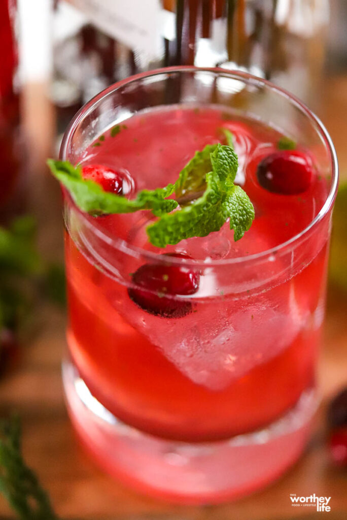 - Garnish with whole cranberries, and sprigs of fresh mint, and wedges of lime.