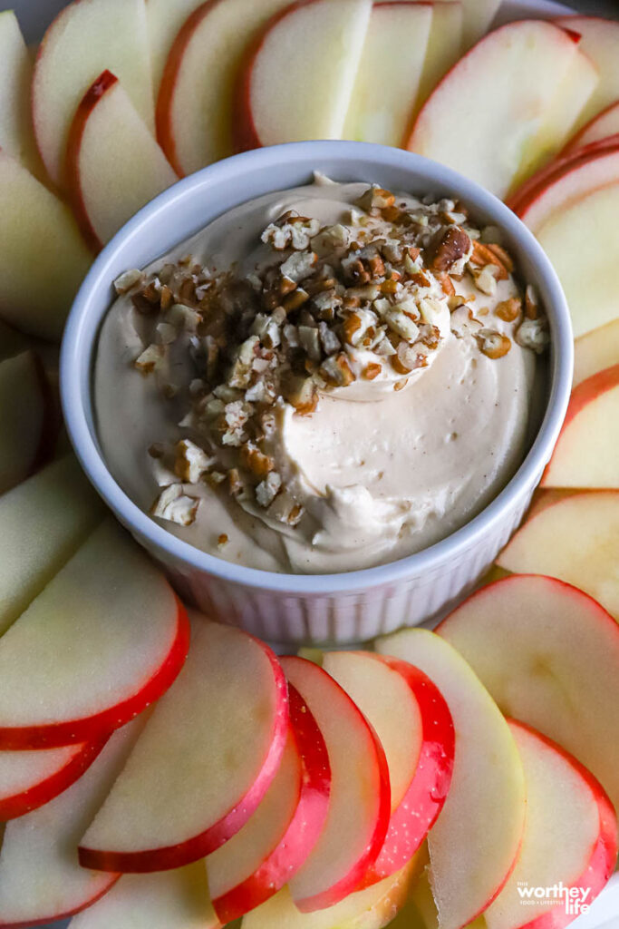 You can pair this creamy caramel flavor dip with pears, strawberries, grapes, or slices of banana.