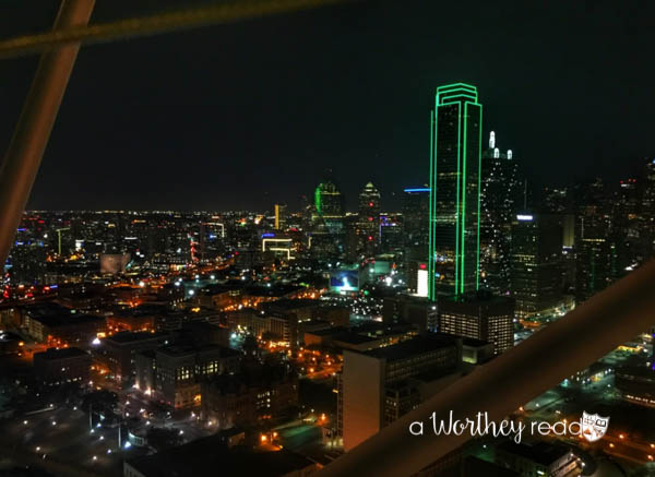 Reunion Tower GEO-Deck- If you want to get a good view of the whole city, Reunion Tower is the place to be. The best time to go is at night during the week. {on the CityPASS}