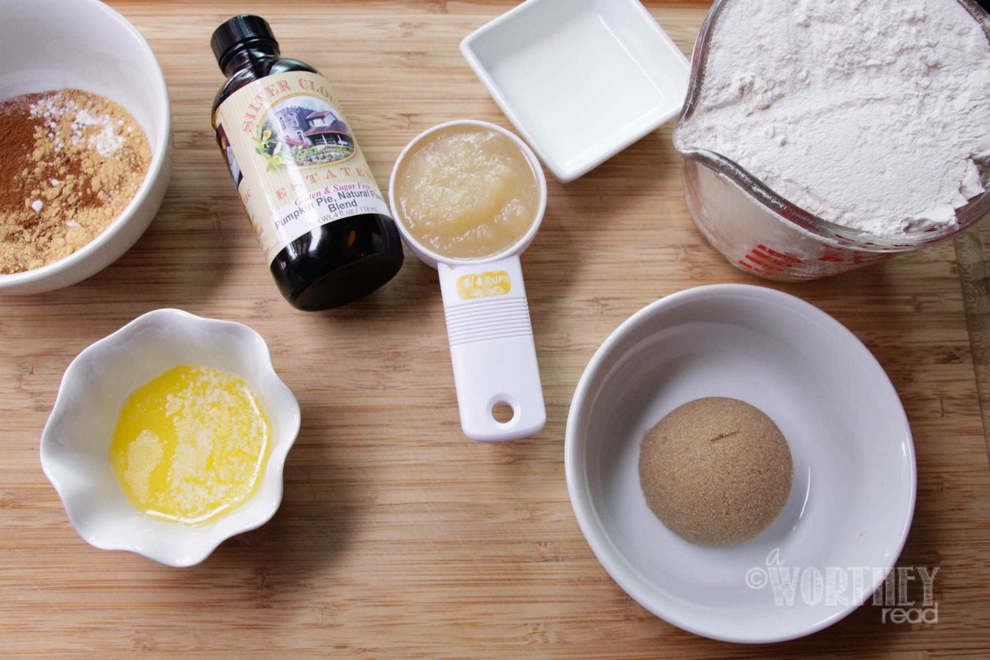 - In a large bowl, combine flour, sugar, cinnamon, baking soda, salt, nutmeg, and cloves. Mix well.