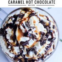 With salted caramel sauce, a little milk, vanilla, dark fudge, whip cream, and a little imagination, I put together this easy homemade hot chocolate recipe.