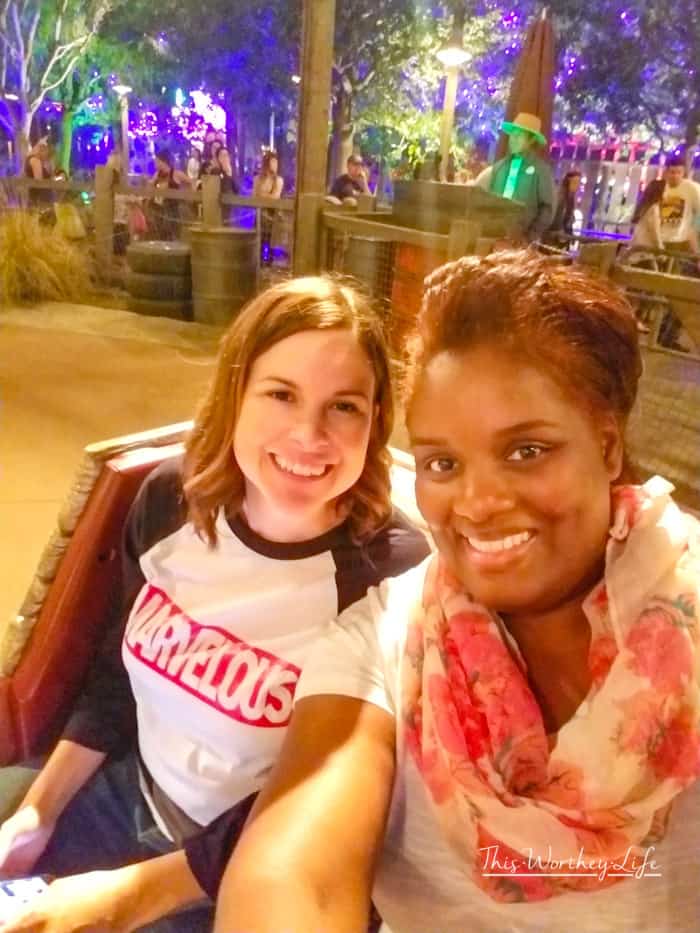 Before heading to Cars Land, we made a pit stop to try the new Guardians of the Galaxy ride, Monsters After Dark! Everyone kept hyping it up, saying it was going to be so scary and a rush of a ride. I’m not a huge roller coaster fan, so I was a little skeptical about riding it. However, I decided to tuck my fear into my back pocket and embraced my YOLO attitude. Along with my companion, Michelle (from The Modern Mom), we handled that ride like a boss. But to be honest, it wasn’t that scary. You go up and down a LOT, which gives a rushing and excited feeling, but it’s a lot of fun!