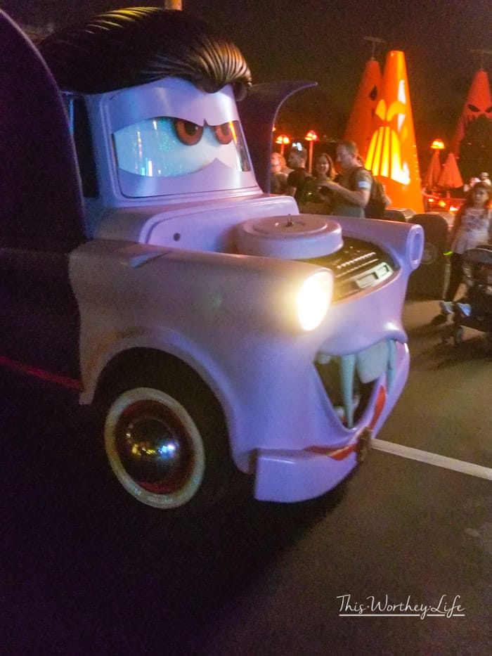 And let’s not forget the characters. Seeing Mater dressed as an all-purple Vampire was pretty cool. And I gotta say, Mater, dressed up as a Vampire is an upgrade from his rusty ole’ look! (lol)