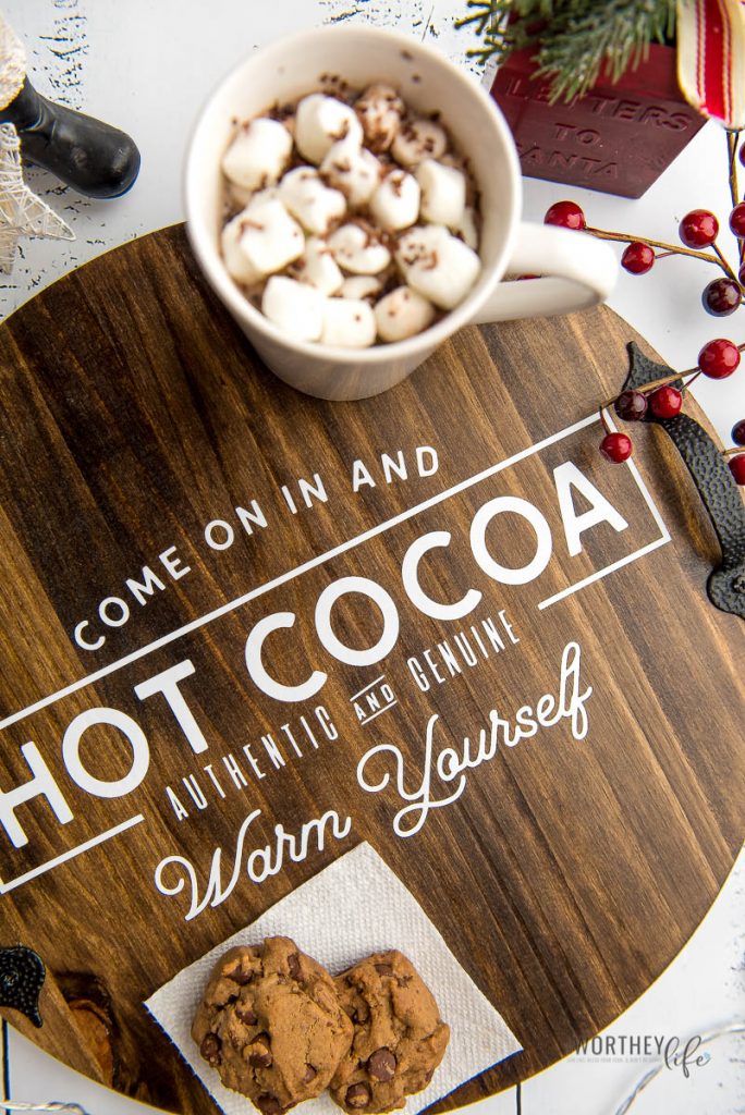 DIY Cricut Wooden Serving Tray for Hot Cocoa