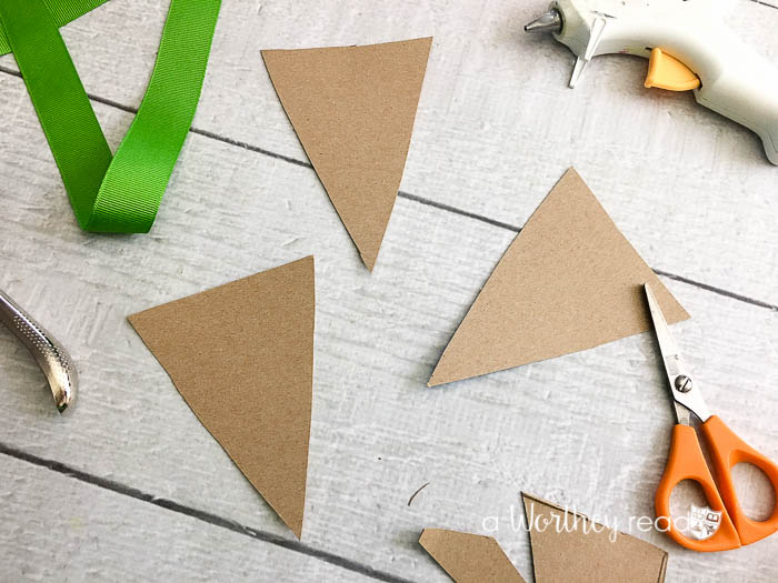 1. Cut your cardboard into several long triangles, mine were about 5″ tall but do not need to be exact.