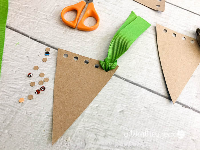 3. Measure and cut five pieces of ribbon per carrot around 7″ in length.