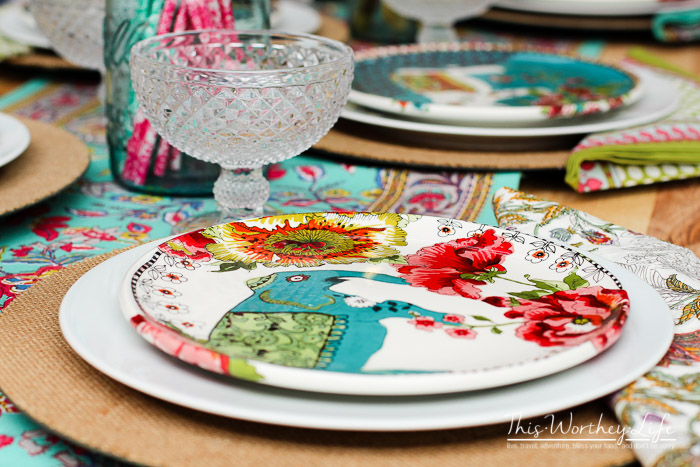 I’ve toyed with the idea of putting together a feing Shui type of vibe party. On a recent trip to World Market, I discovered these beautiful elephant plates, and an idea started to form! What if I could come up with a colorful outdoor picnic idea?