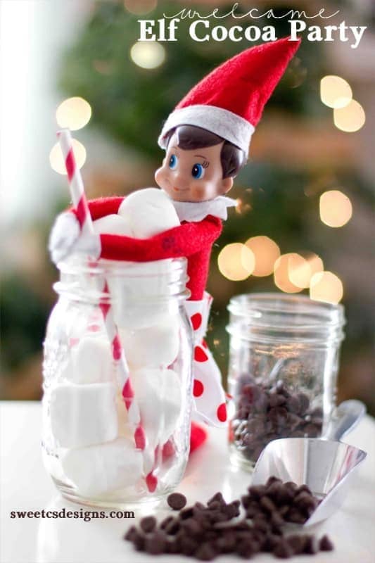 Prepare an Elf on the Shelf hot cocoa board filled with your child’s favorite snacks + treats.