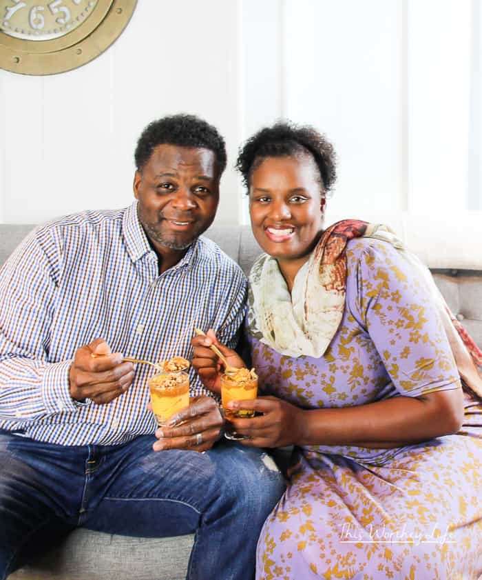 Awwww while I love the food, I’m loving the photo of both of you together enjoying it. I have to try that pumpkin no-bake cheesecake. I just know that it’ll taste good. Here’s to a peaceful and quiet weekend my beautiful friends.