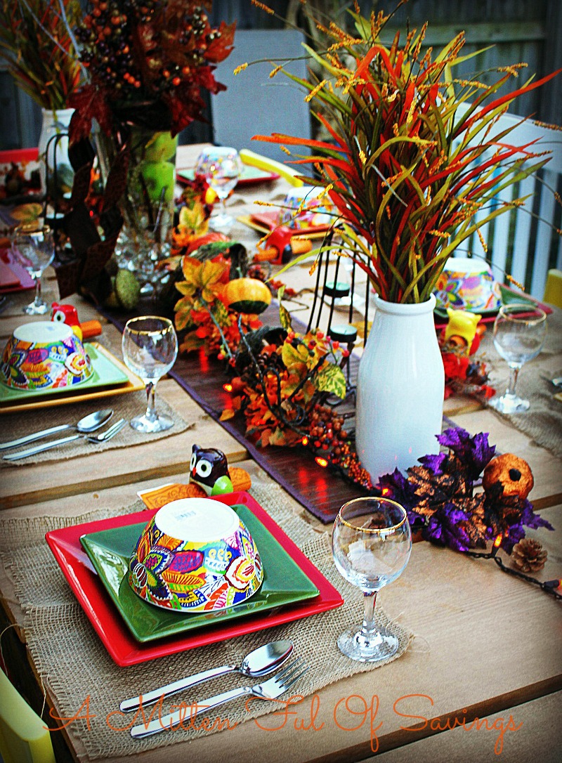 I love your Fall Table Decor! All of the colors coming together just makes the pieces complement each other so well. Those owl napkin holders are just too cute – and you got them at an incredible deal.