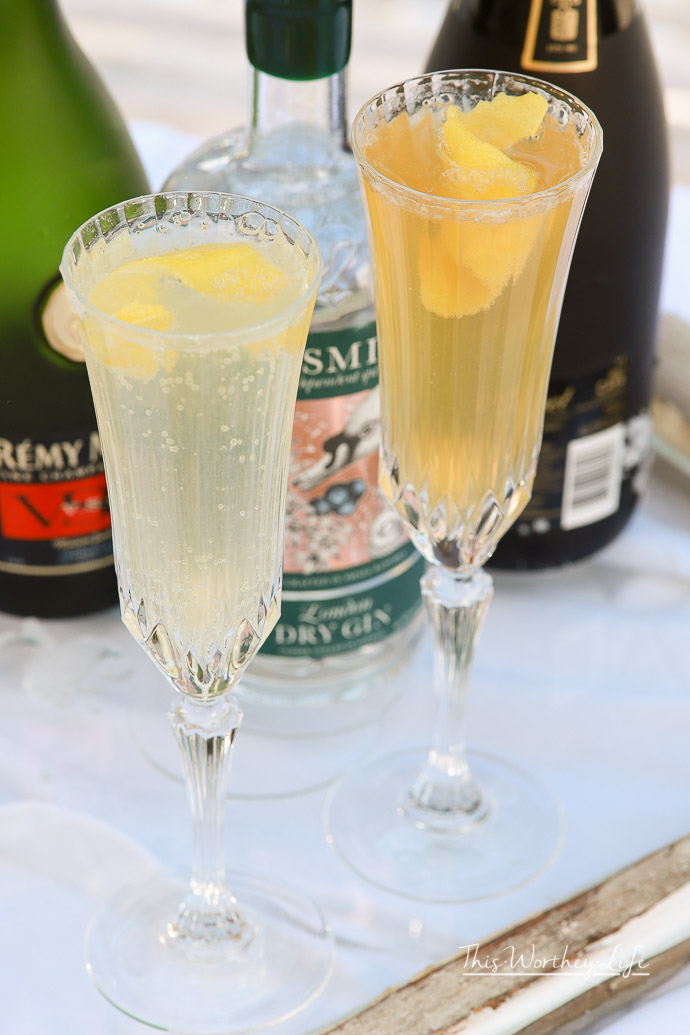 Ring in the New Year with a French 75 Cocktail. You can make it two ways- with Gin or Cognac. I’m showing how to make a French 75 Cocktail with Gin and with Cognac.