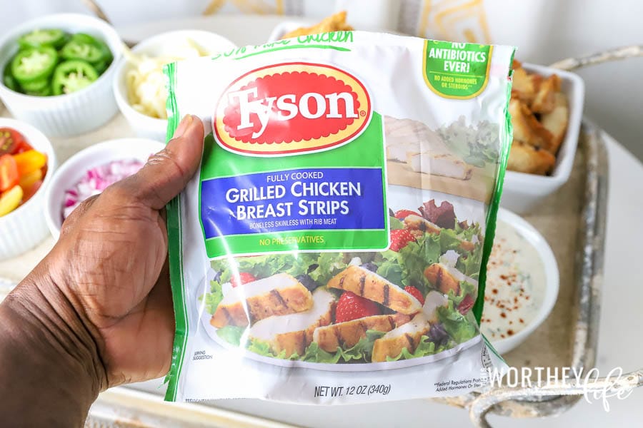 Okay, let’s get in a huddle because I’m letting you in on the perfect play when it comes to creating an amazingly delicious and super easy Game Day Taco Bar. First, you gotta start with Tyson Any’tizers® Popcorn Chicken, Tyson Grilled & Ready® Fully Cooked Grilled Chicken Breast Strips, and Tyson Refrigerated Chicken Strips. From there, it’s all up to how you want to win one for the hungry Gipper.