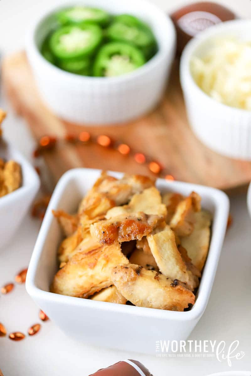 Why Tyson? Well, in case you haven’t heard their Grilled Chicken Breast Strips are made from 100% real, simple, all-natural ingredients and Tyson chickens are farm-raised with no antibiotics ever. But that’s not all; there’s no breading which means fewer calories and less fat. And the taste; well once you bite into these Grilled Chicken Tacos, you will understand precisely what I’m talking about.