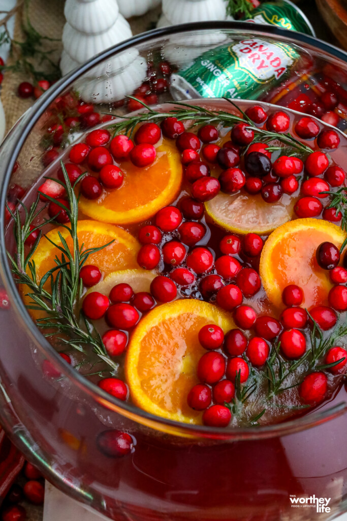 Ginger Ale adds a bubbly, slightly sweet, spiced base that combines with the punch’s flavors.