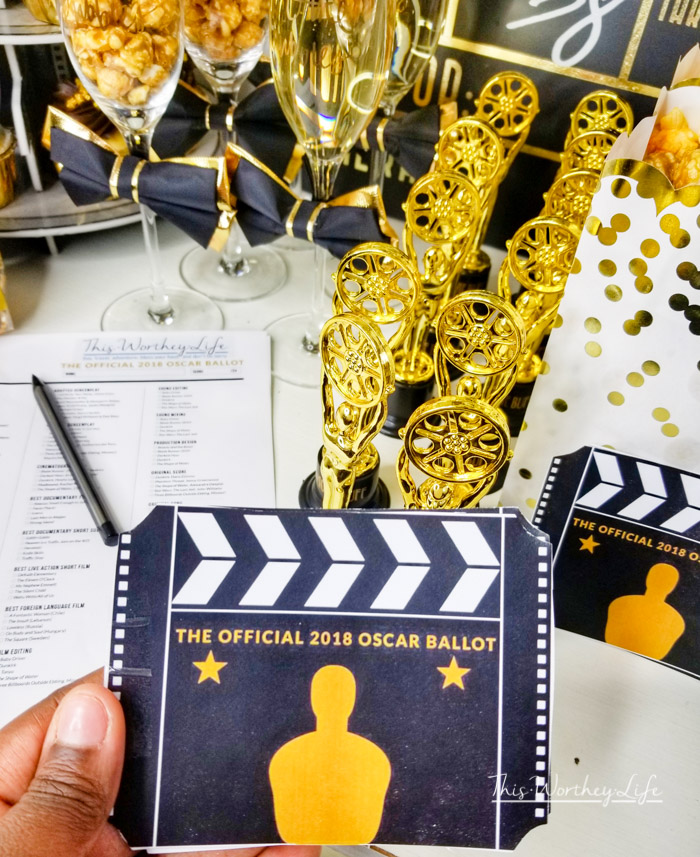 While the award show is the main event, have your guests get involved using our FREE Oscar Ballot printable.