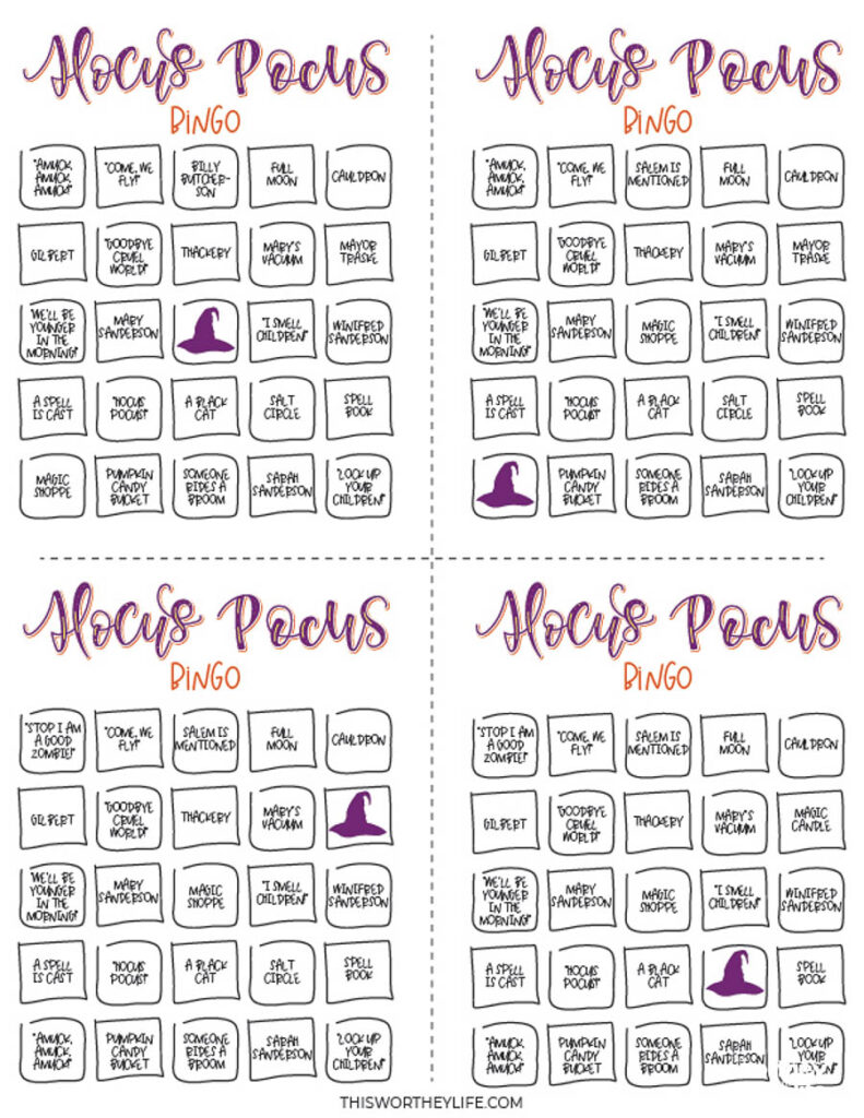 All you have to do is watch the game and then mark out the squares on which you find a match. And the great thing about these printables is they will work for the newest movie, Hocus Pocus 2!