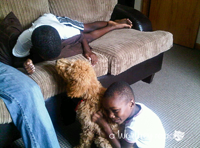 It seemed at first they were coping just fine without Jeffers. But eventually their despair manifested itself in their increased acting out in a myriad of ways: short tempers, more “episodes” and even lower school grades. Now, we’re realists and no, maybe every problem in the absence of Jeffers can be laid at the paws of his departure, but we honestly feel it played a significant role. Then in therapy they spilled the beans, the boys really missed their dog. Lots of tears again and lots of hugs as well. As parents we reassured and even offered our sincere apologies. And really, it was foolish of us (the parents) to think otherwise. Having our Labradoodle was a big help, he had become their dear friend and in so many ways he was a major coping mechanism, then we took him away. We had witnessed first hand the calming and soothing effects having this dog in our midst had made. Whenever our boys experienced bouts of anxiety or frustration, all it took to make things better, was some much-needed cuddle time with a golden colored fur ball. There was some transference of feeling going on and negative energy was whisked away like magic, we witnessed it with our own eyes on a daily basis.